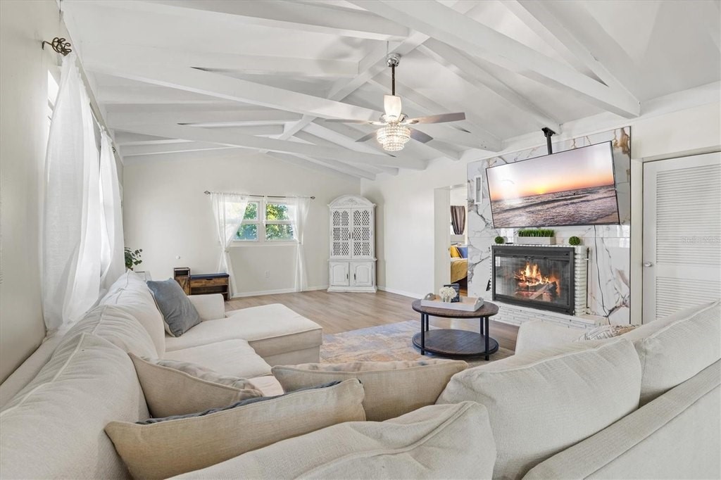 Experience the best of Sarasota living in this beautifully updated single-story ranch home with pool, nestled in sought-after Whitfield Estates-a Manatee County gem with a Sarasota address. Situated near Sarasota Bay, this home sits among multi-million-dollar residences and offers the perfect blend of comfort, charm, and opportunity. This 3-bedroom, 3-bath home welcomes you with bright, open living spaces filled with natural light. The primary bedroom and 2nd bedroom both feature walk-in closets and ensuite baths. The open-concept floorplan connects the living, dining, and kitchen areas-ideal for entertaining or relaxing by the cozy fireplace. A stylish kitchen bar provides extra seating and a central gathering spot. Step outside to your private Florida oasis: a heated pool with screened enclosure, surrounded by lush landscaping on a spacious 1/3-acre lot. Enjoy morning coffee on the front patio with peek-a-boo views of Sarasota Bay, or take an evening stroll to the bay and watch the sunset. Whether you're searching for a full-time residence, seasonal retreat, or short-term rental investment, this property offers endless possibilities in one of Sarasota's most desirable neighborhoods. This property is built of concrete block construction, has impact windows, and sits in the desirable X flood zone (flood insurance is not required). Roof is membrane material (2017). AC (2023). For an optional annual HOA fee of just $35, homeowners in Whitfield Estates may obtain a culinary membership at Sara Bay Country Club, granting full access to the clubhouse for dining and social events (golf privileges not included; membership subject to club approval). You and your guests will have plenty of entertainment and convenience options within a short drive including Sarasota Bay, IMG Academy, SRQ Airport, University Towne Center Mall, downtown Sarasota, St. Armands Circle, Lido Key and gulf beaches.